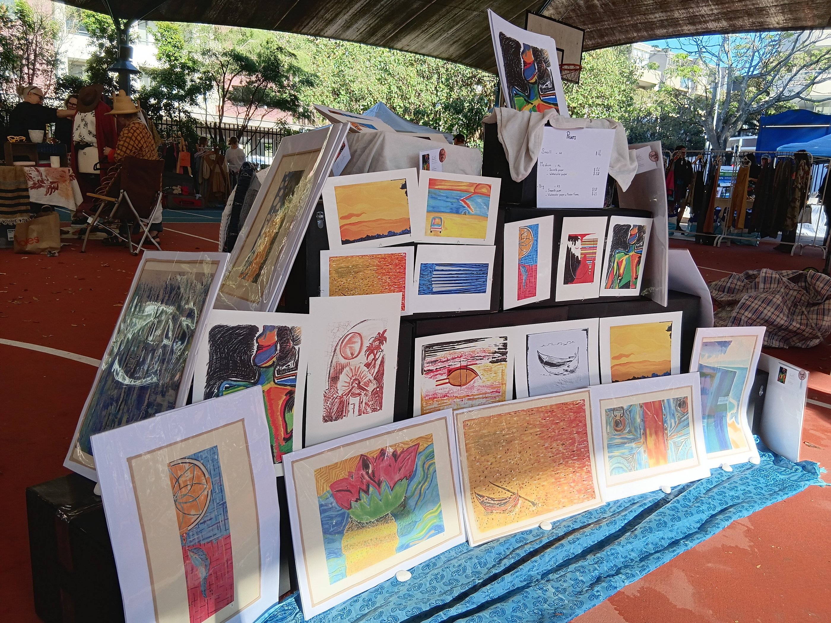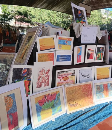 Vibrant canvas and prints with earthy hues.
